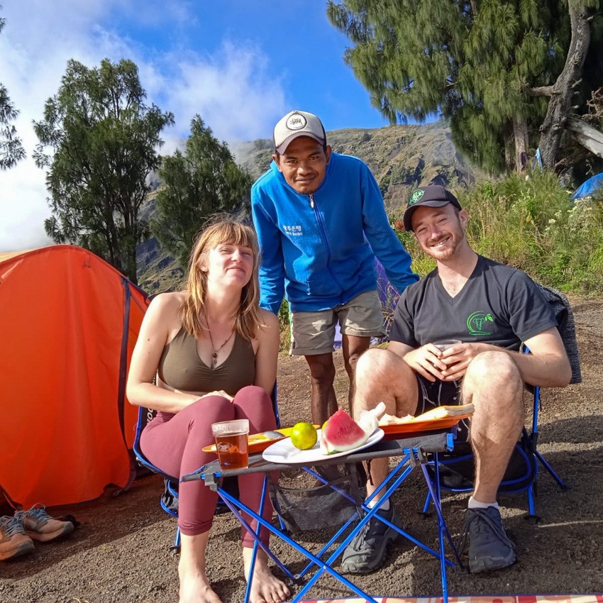 It was a wonderfull journey to the Rinjani Summit ! We were really lucky with the weather but especially with the teams ! Our guide, Endiy, was always smiling, giving good energy to climb but also interesting story about the mountains. The 3 porters made an incredible job to provide us good sleeping conditions and delicious food at any time of the day ! We made this aventure together with a friendly French couple and shared really good moments together ! Finally, Hill was really responsive and well organised to provide home stay and travels wherever we wanted in Lombok ! I really recommend this company that is also taking care of their carbage on the moutain and that’s a really good thing.