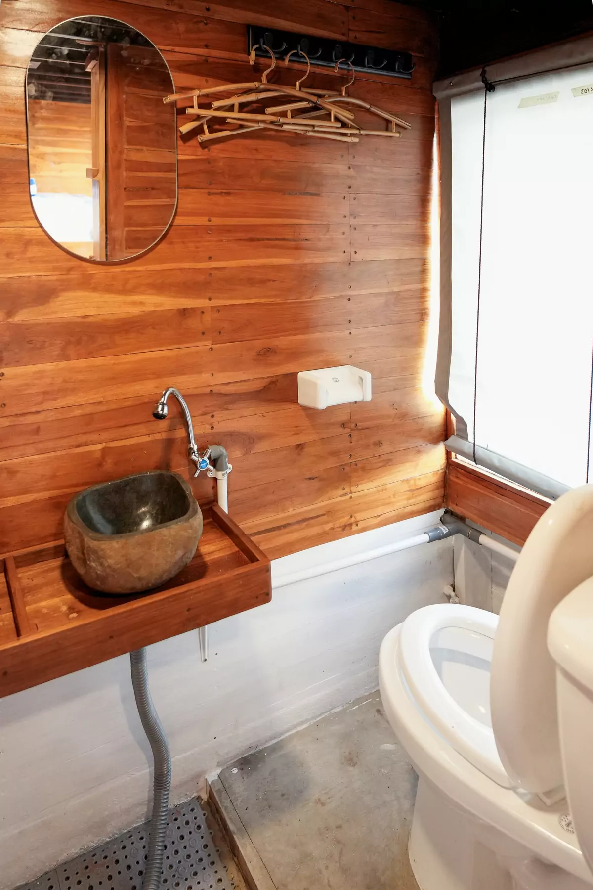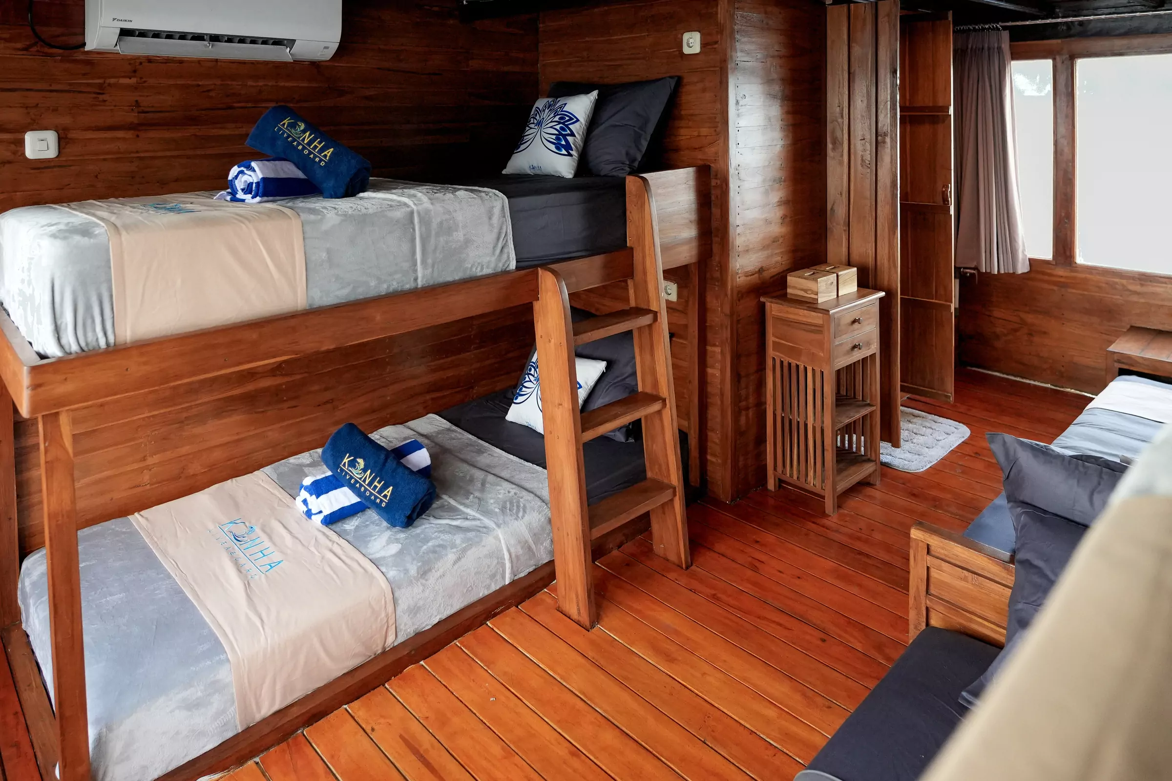 Hostel, CittaThe upper‑deck sharing cabin fits eight with four singles and two doubles, plus one bathroom inside. AC keeps the space cool, and there are spots to tuck away daypacks. It is a simple, social setup for friends who want to laugh late, swap photos, and be first out the door for sunrise plans.