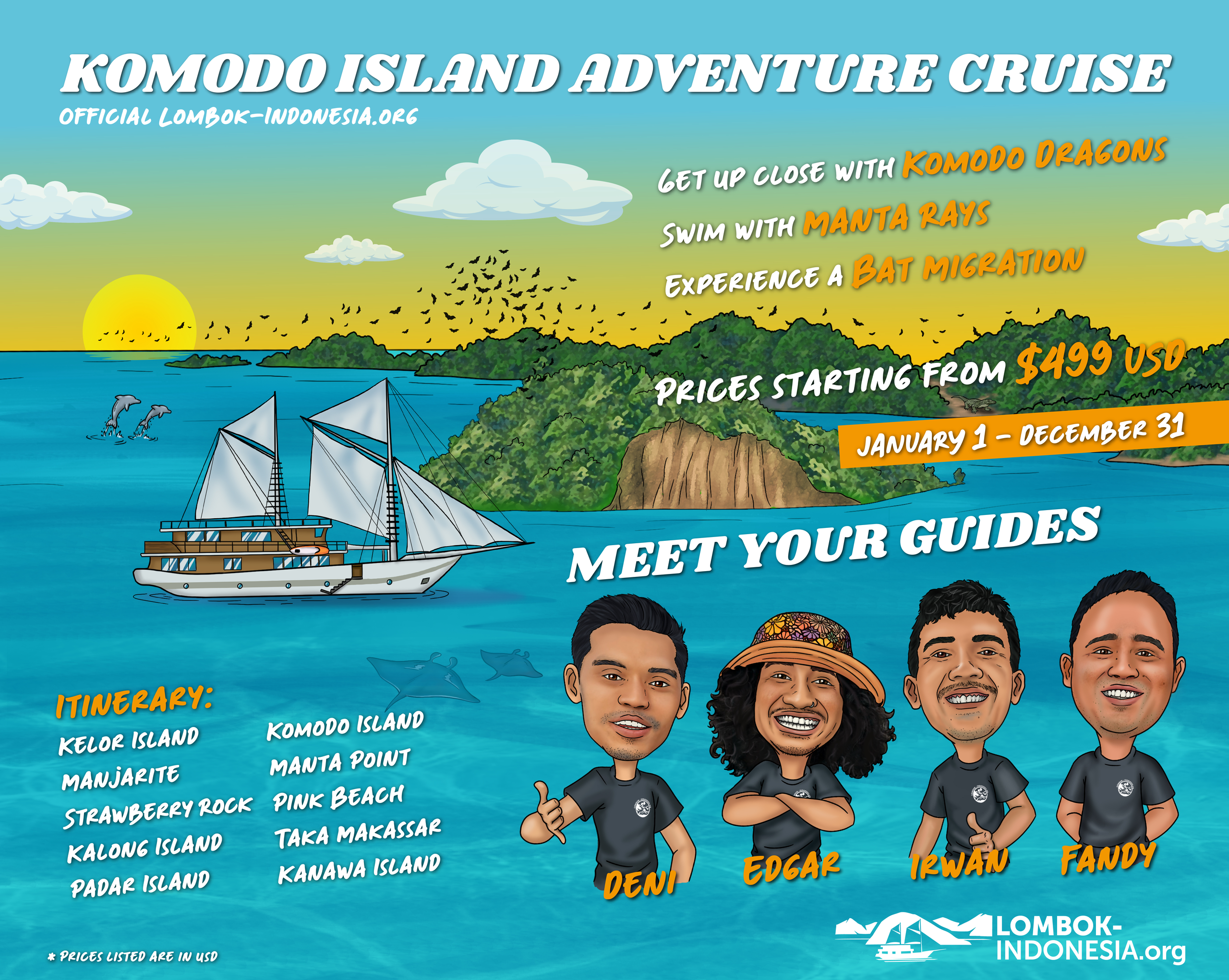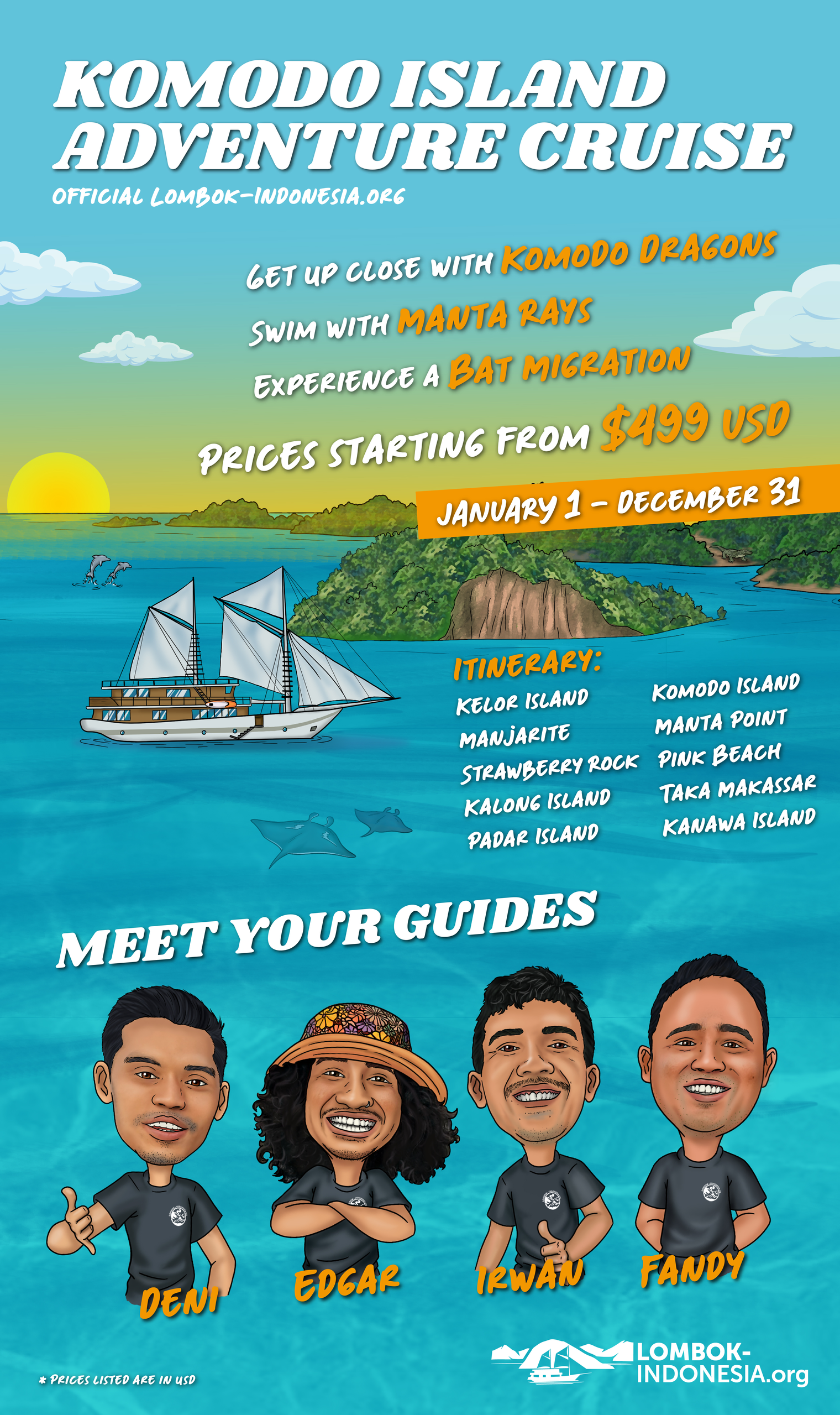 Our crew has countless hours of experience navigating the waters around Komodo! We’re fun, friendly, and the best crew in Labuan Bajo!