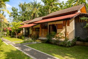 Villa Bamboo is a more natural experience in bamboo huts. The location is beautiful and rooms are cooler at night because of their location higher on the hill. There is no air-conditioning, but there is wifi, a restaurant, and a wonderful place to watch the sunset. Walking to the waterfalls is not difficult and you are right next door to the Senaru Traditional Village.