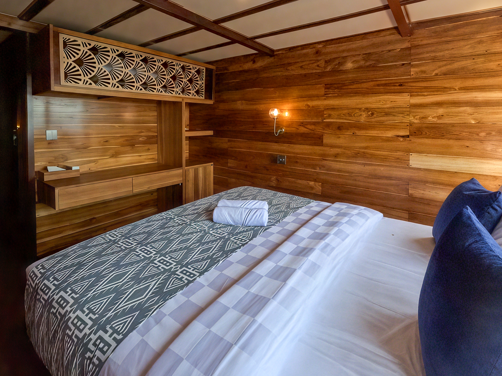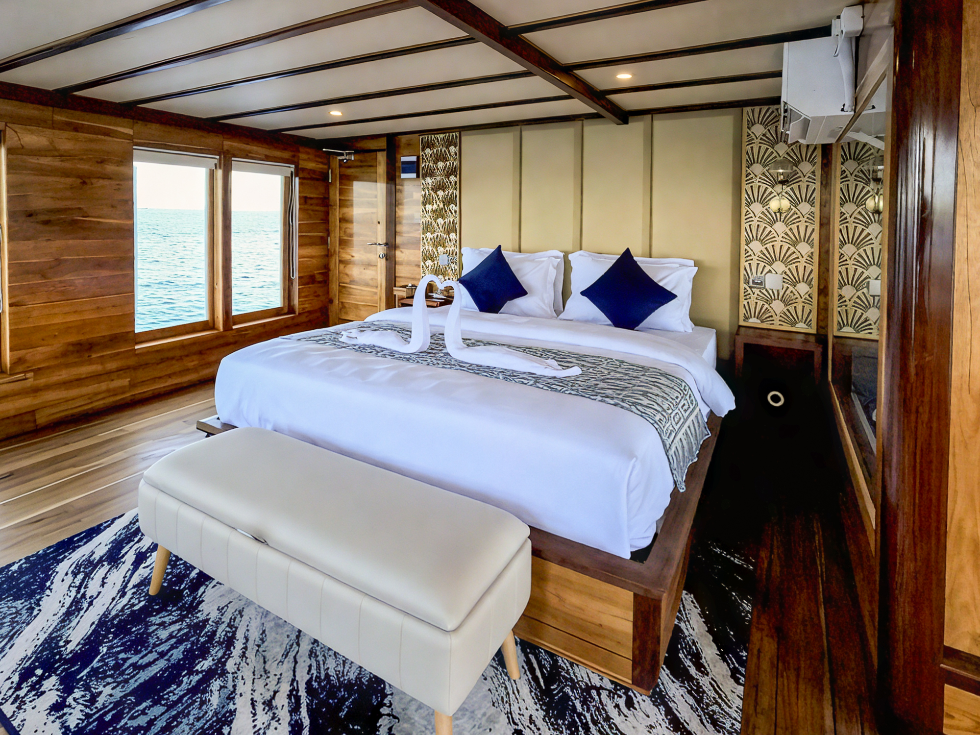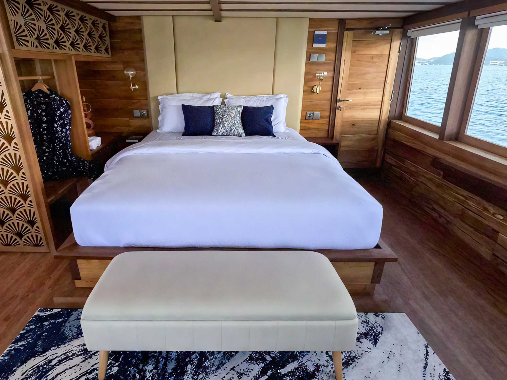 Double Room, RafflesSimilar to Borneo, the Java cabin includes a double bed, air conditioning, a private bathroom, and ocean views. With a more minimal layout, it’s perfect for guests who want a simple, peaceful place to rest after a day of exploring.$ 625 Per Person -