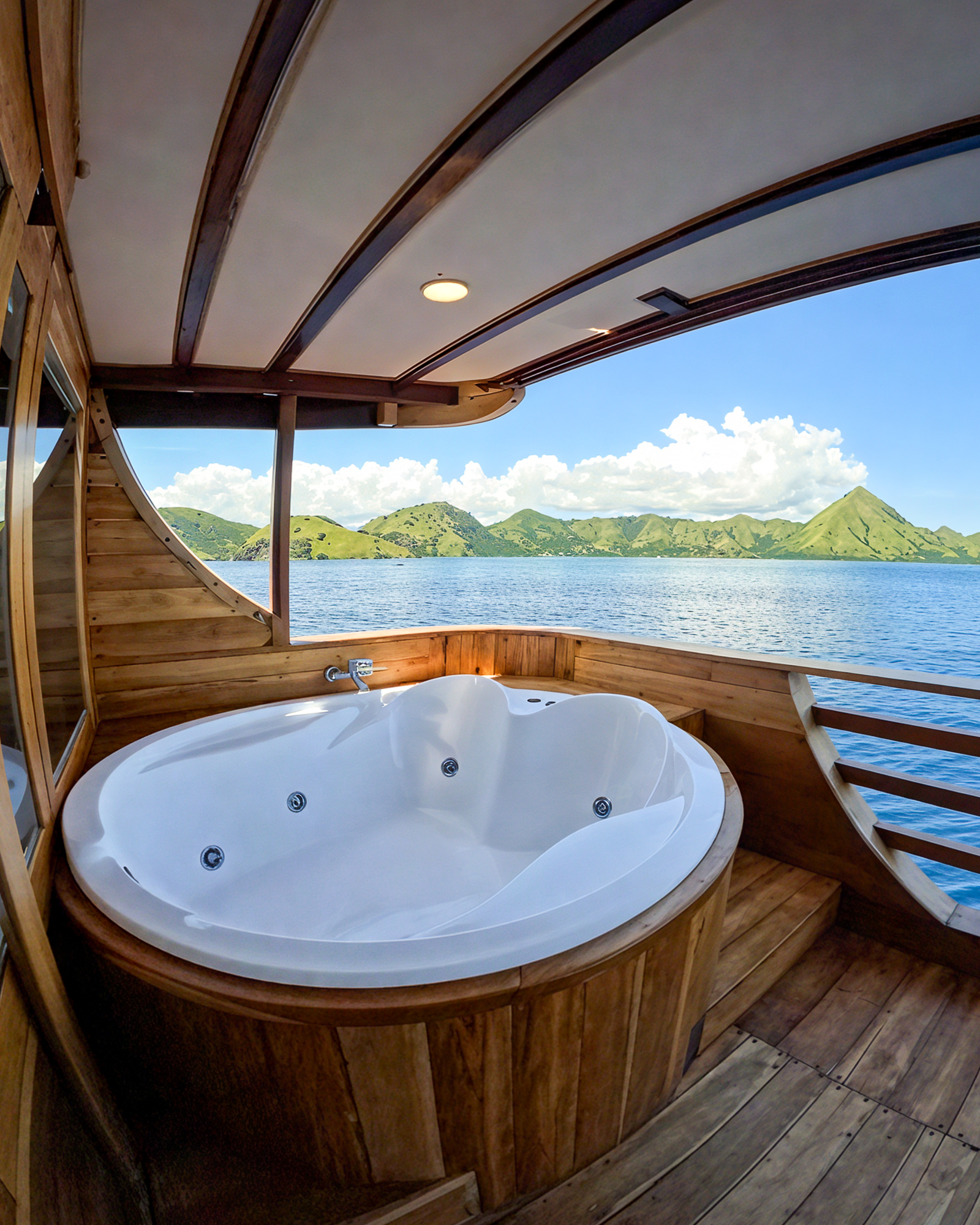 Double Room, RafflesThe most luxurious cabin onboard, Malacca I features a king-size bed, ensuite bathroom, and its own private balcony with a jacuzzi. Designed for two guests, it’s ideal for honeymoons or romantic escapes. With stunning sea views and a spacious layout, this cabin is pure indulgence.