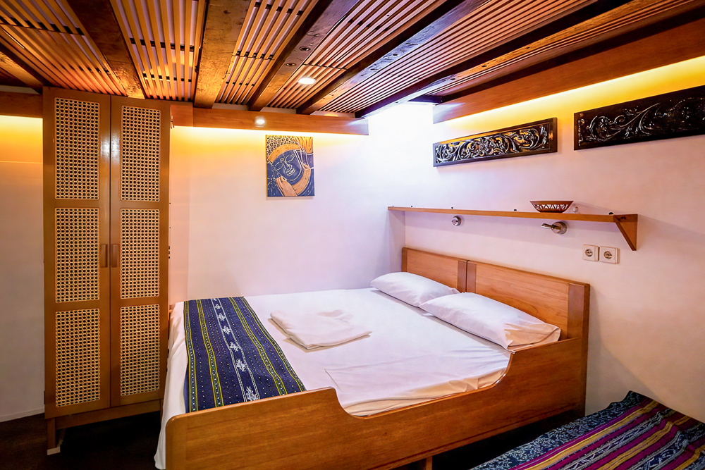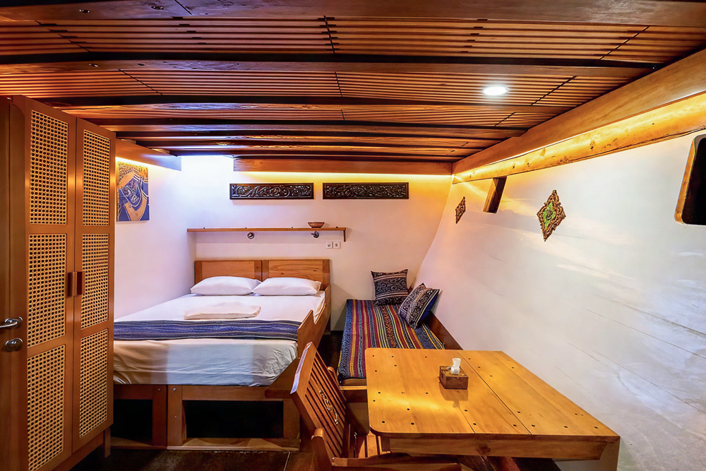 Hostel, Lombok-Labuan BajoA lower deck cabin with one double bed and one single bed, full air conditioning and a private bathroom. Includes towels, shampoo and an open window. A practical choice for three guests wanting their own cabin.$ 450 Per Person -